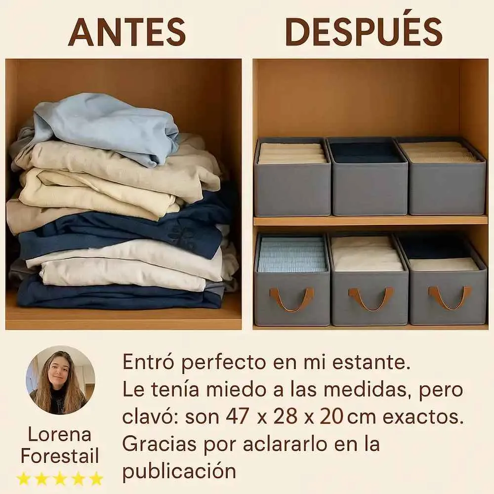 Con paredes reforzadas y materiales resistentes, no se deforma aunque lo llenes de ropa pesada o calzado.